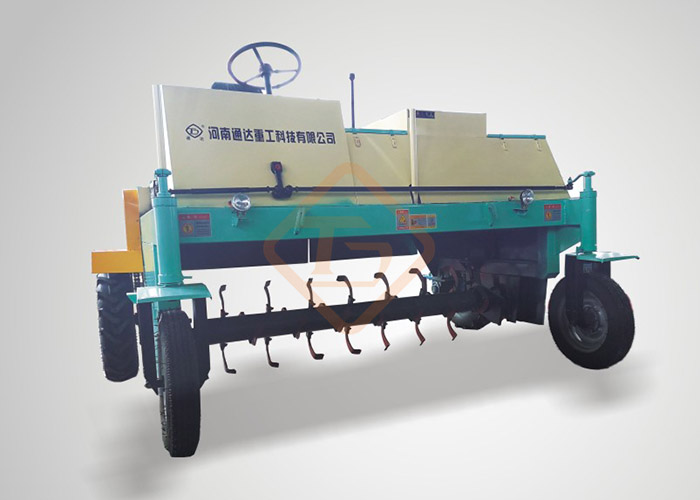 行走式翻拋機(jī)(自行式翻拋機(jī))是生產(chǎn)生物有機(jī)肥專(zhuān)用成套設(shè)備中的主機(jī),該機(jī)采取四輪行走設(shè)計(jì),可前進(jìn)、倒退、轉(zhuǎn)彎,由一人操控駕駛。行駛中整車(chē)騎跨在予先堆置的長(zhǎng)條形肥基上,由機(jī)架下掛裝的旋轉(zhuǎn)刀軸對(duì)肥基原料實(shí)施翻拌、蓬松、移堆,車(chē)過(guò)之后篡成新的條形垛堆。即可在開(kāi)闊場(chǎng)地,也可在車(chē)間大棚中實(shí)施作業(yè)。