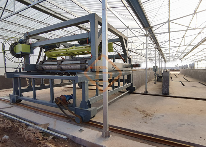 鏈板式翻堆機適用于畜禽糞便、污泥垃圾、秸稈等有機固體廢棄物的槽式好氧堆肥。該機的行走系統采用變頻調速、對不同物料的適應性較好且運行平穩(wěn)、翻堆效率高、能進行深槽作業(yè)等優(yōu)點,有效縮短發(fā)酵周期,提高生產效率及產品質量。采用變頻調速速行走系統,能很好適應工作負荷的變化?筛鶕锪献枇η闆r,靈活調節(jié)行走速度,使設備有更強的適應性和靈活性?蛇x配移行車,實現多槽設備工用,在設備的能力允許條件下,只需增建發(fā)酵槽,即可擴大生產規(guī)模,提高了設備使用價值。