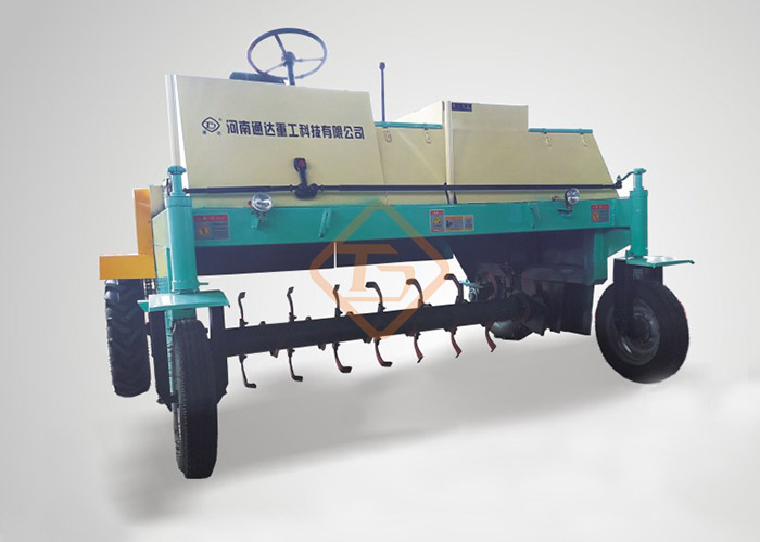 行走式翻拋機(jī)(自行式翻拋機(jī))是生產(chǎn)生物有機(jī)肥專(zhuān)用成套設(shè)備中的主機(jī),該機(jī)采取四輪行走設(shè)計(jì),可前進(jìn)、倒退、轉(zhuǎn)彎,由一人操控駕駛。行駛中整車(chē)騎跨在予先堆置的長(zhǎng)條形肥基上,由機(jī)架下掛裝的旋轉(zhuǎn)刀軸對(duì)肥基原料實(shí)施翻拌、蓬松、移堆,車(chē)過(guò)之后篡成新的條形垛堆。即可在開(kāi)闊場(chǎng)地,也可在車(chē)間大棚中實(shí)施作業(yè)。